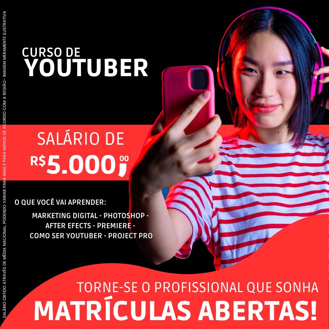 O curso de YouTuber na Micropro é show! Com o objetivo de ensinar o aluno a criar um canal e trabalhar na produção de vídeos para o YouTube e para qualquer outra rede social que você quiser, o curso apresenta todas as informações importantes que facilitarão seu caminho rumo ao sucesso na Internet.
